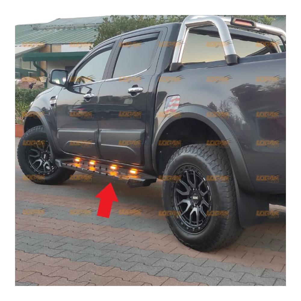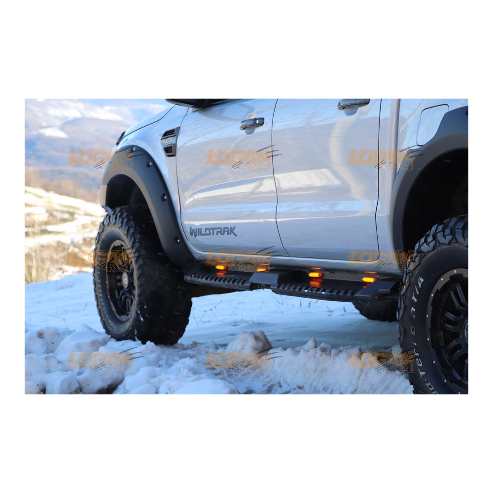2. Heavy Duty Side / Running Boards Steps with LEDs Lights for Ford Ranger 2012 - 2023 T6 T7 T8 Carbon Steel Model with Central Partition with TÜV / ABE Certification