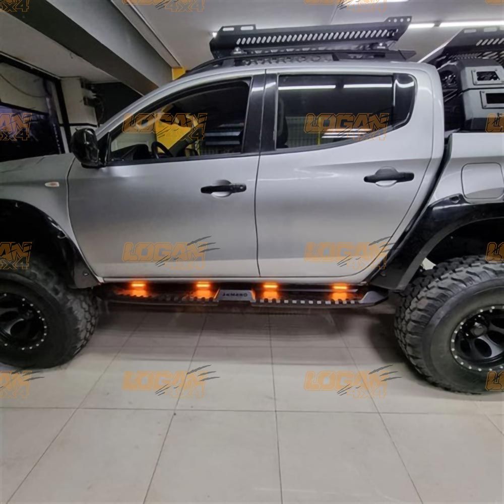 9. Heavy Duty Side Steps / Running Boards with LEDs Lights for Mitsubishi L200 2015 - 2023 Model with Central Partition Carbon Steel with TÜV / ABE Certification