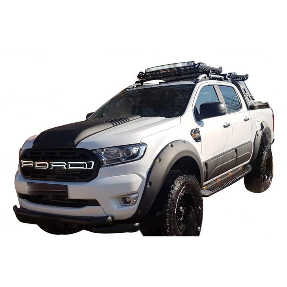 7. Set of Fender Flares / Wheel Arch Extensions with Aesthetic Screws + 1 Bonnet Scoop + Side Door Covers for Ford Ranger T6 T7 T8 2015 – 2023